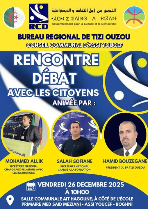 La salle de réunion de l’APC d’Aït Hagoune, dans la commune d’Assi Youcef, relevant de la daïra de Boghni, avait du mal à contenir la foule nombreuse de citoyens venus assister et écouter les cadres du RCD , M Sofiane Salah,M Mohamed Allik, secrétaires nationaux ainsi que M Hamid Bouzeguane, Président du bureau régional de Tizi-Ouzou
